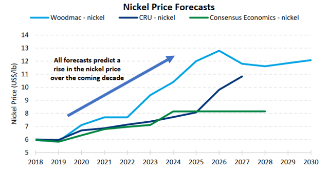 Nickel price forecasts all see higher nickel prices in the next decade