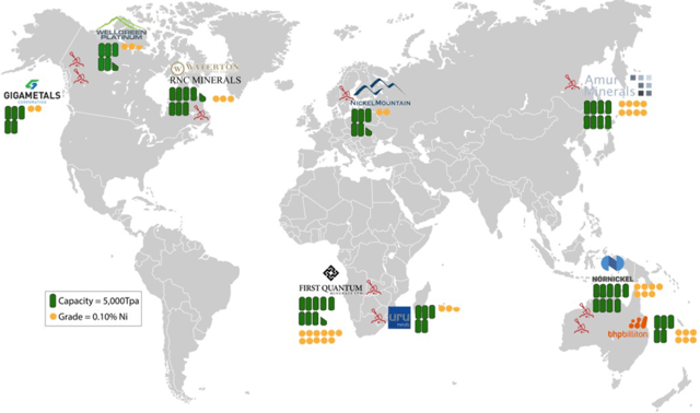 The two juniors below were chosen as they have large upside potential should nickel prices spike higher and if they advance to production quickly. Both are nickel sulphide ore, so CapEx to reach production should be lower than laterite ore projects. Also, costs of production to produce class 1 nickel sulphate should end up reasonable (helped by sulphide ore), depending on grades and by-product credits.