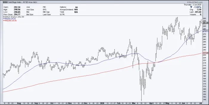 Conflicting US economic data will continue to support the bullish precious metals equity charts. While June saw 4.8 million jobs created, we also have a record number of unemployed and reports of 25,000 retail closures along with a potential for 85% of independent restaurants to remain permanently closed.