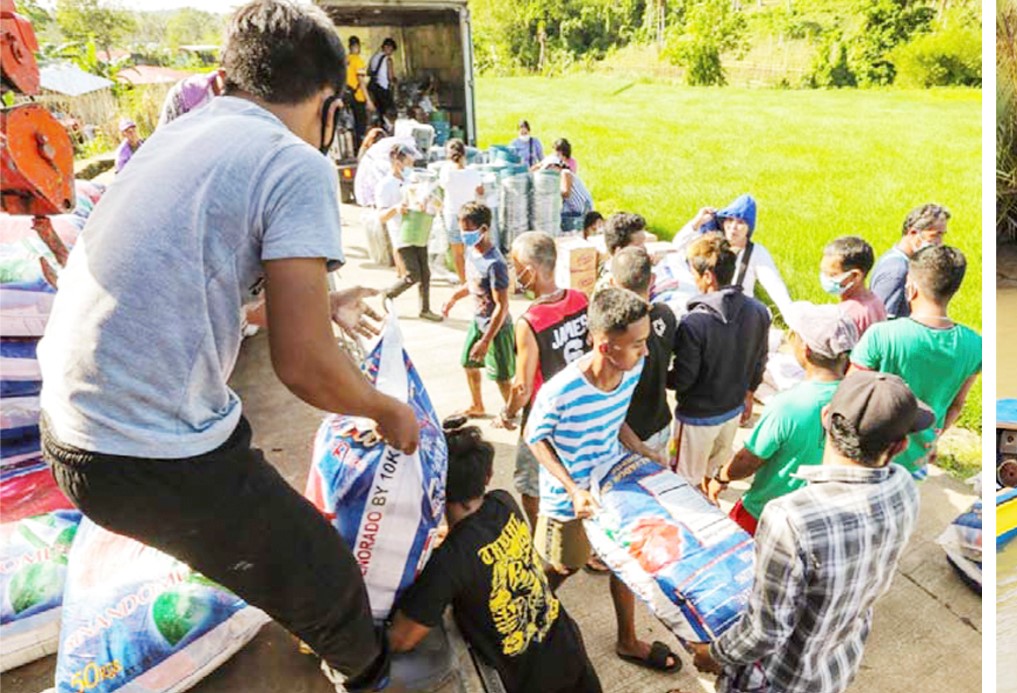 RELIEF GOODS UNLOADING-Filminera and PhilGold crew members unload relief goods for thousands of residents in Baracay, Albay.