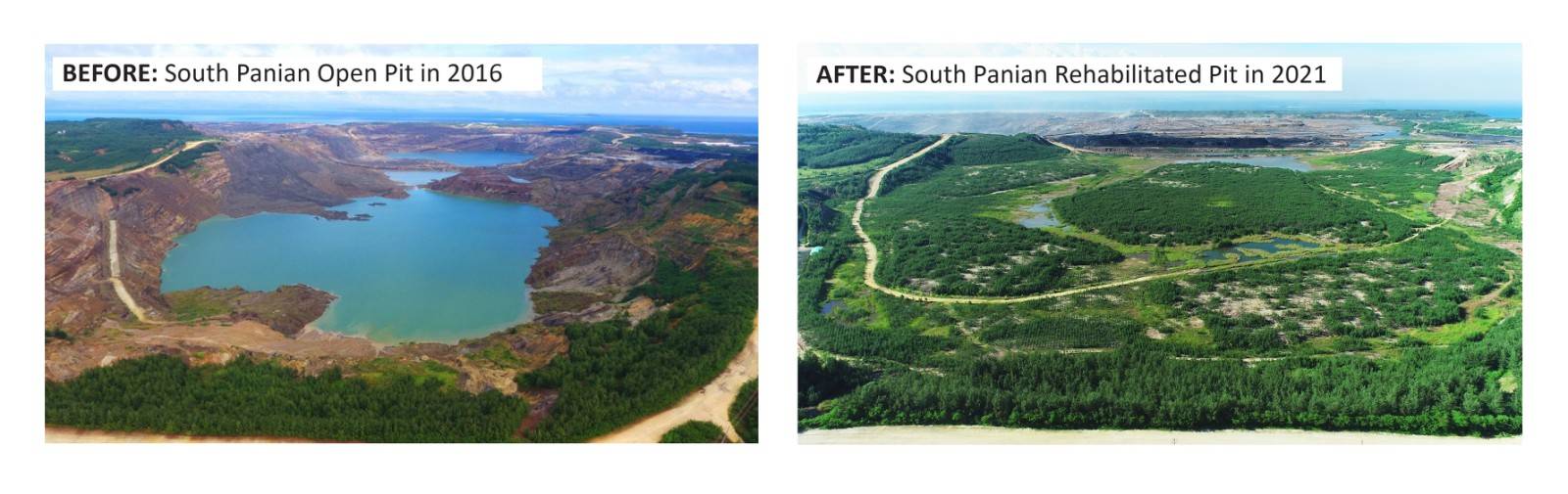 South Panian mine before and after the final rehabilitation program of Semirara Mining and Power Corporation